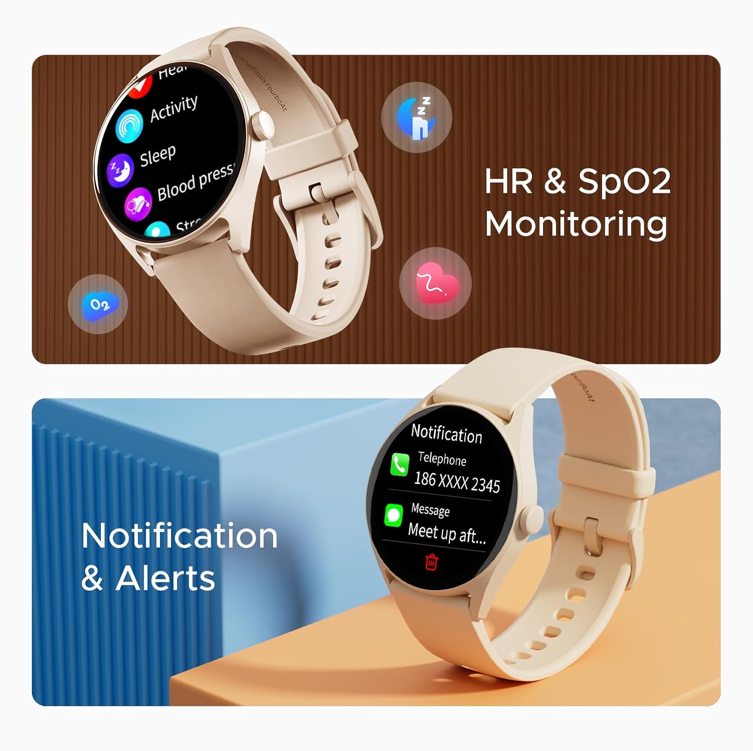 The Lunar Link boasts a 1.4-inch HD display, which is decent for the price range. The watch itself has a sleek and lightweight design, available in black, grey, rose pink, and beige color options. While it may not have the premium feel of some higher-end smartwatches, it still looks modern and stylish.